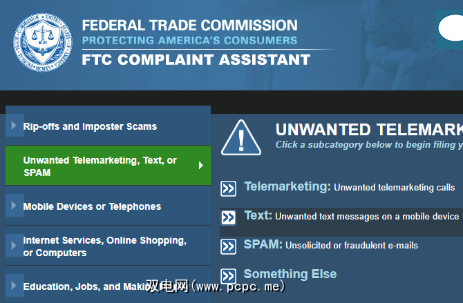 访问FTC的“投诉助手"页面向其报告垃圾邮件。在左侧,点击不需要的电话销售,文字或垃圾邮件,然后从列表中点击文字。如您所愿,您需要输入发送文本的电话号码,包含的消息以及类似的详细信息。