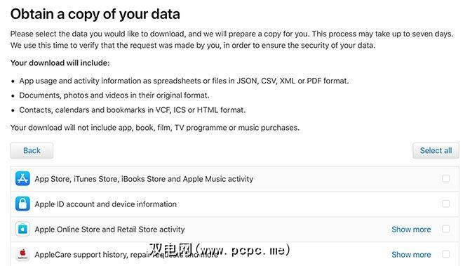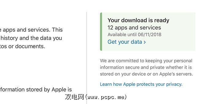 该服务可帮助您了解Apple根据您的Apple ID存储的数据。您还可以使用它来获取iCloud数据的副本,包括邮件,照片和文档。