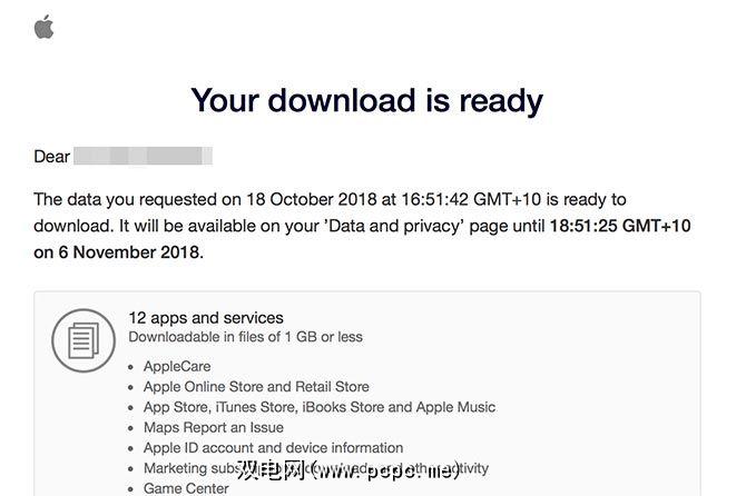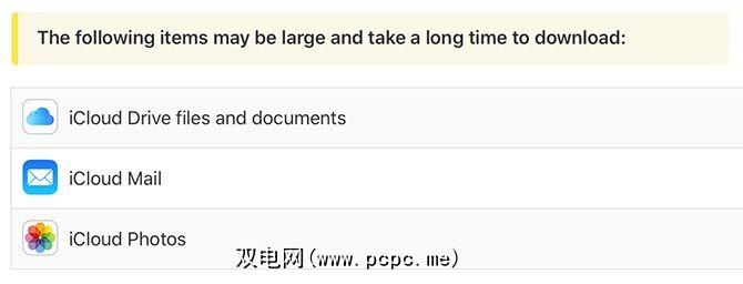 下载数据将帮助您了解保留哪些数据您的帐户。切勿向他人透露您的Apple ID登录信息,因为他们可能会掌握此下载中的所有内容。