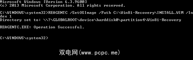 REAGENTC / SetOSImage / Path C:\ Win81-Recovery \ INSTALL.WIM / Index 1