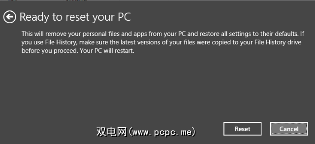 现在已恢复并注册了恢复分区,就可以重置Windows 8。