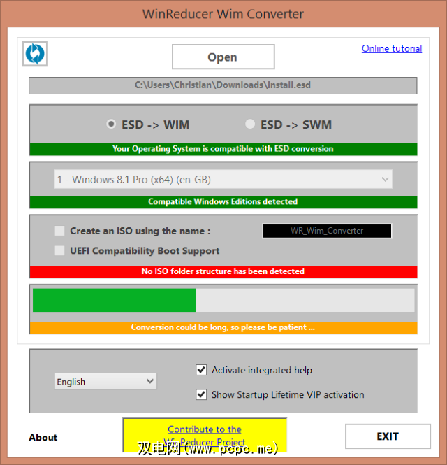 要获得可在计算机上使用的Windows 8的合法副本,请使用Microsoft的工具,用于为Windows 8.1创建安装媒体。尽管下载过程可能会花费一些时间,具体取决于您的连接速度,但这不需要花费太长时间。在这种情况下,请打开一个新选项卡并下载WinReducer的Wim Converter工具,您很快将需要它。