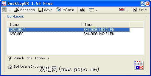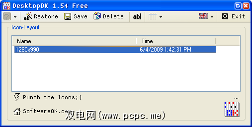 那么,我为您提供了完美的软件!桌面OK可以完成一项工作,而且效果很好。它可以记住您桌面图标的位置并随时恢复它们。