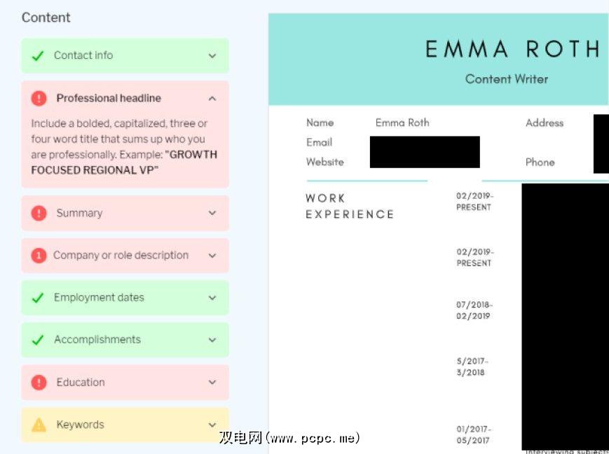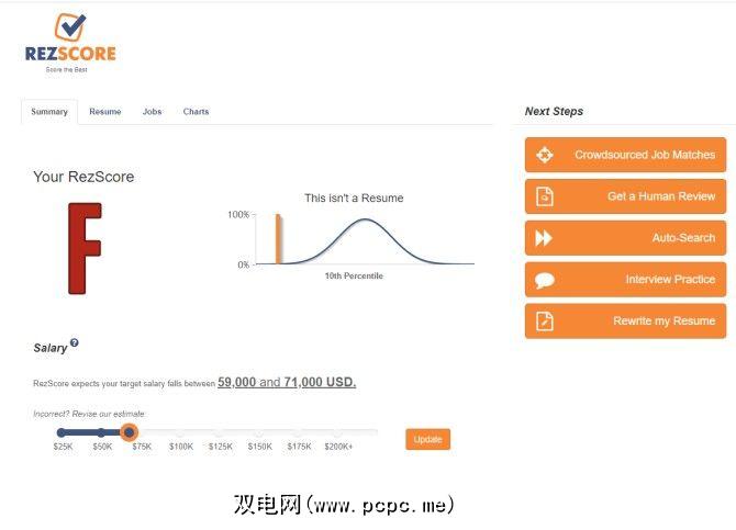 要快速查看简历,请将其上传到RezScore的评论服务。如果您的简历迫切需要帮助,此网站将告诉您。它不是这里列出的最全面的工具,但绝对可以使您知道哪里出了问题。