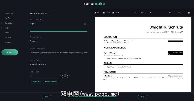 转到站点并开始填写每个方框。您的个人资料,工作和专业经验,技能,成就,教育,链接,语言流利度和爱好。我特别喜欢技能部分的10分制,使之成为视觉和精美的简历。完成后,将其下载为PDF。