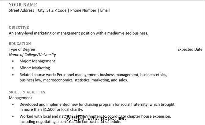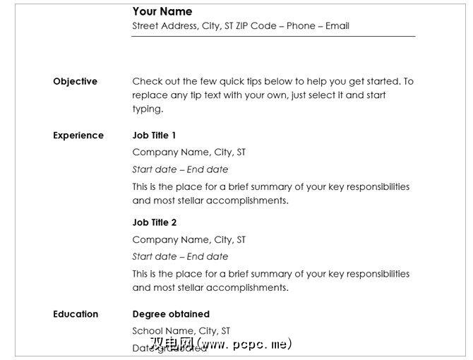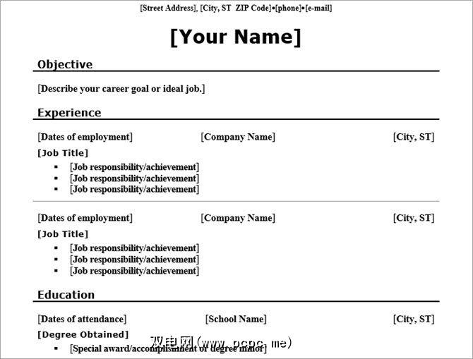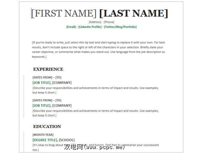 这里是Microsoft Word的另一个基本的免费简历模板,仅包含几个部分。您可以通过清晰,有吸引力的方式在您的经验和教育中加入摘要。
