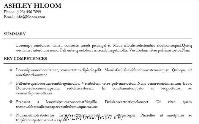下一个模板是另一个出色的功能简历,但没有颜色。您可以从顶部的摘要开始,然后继续列出具有吸引力的要点的关键能力。之后您的工作经验和教育程度,使它成为适合大多数人的良好的功能简历模板选项。