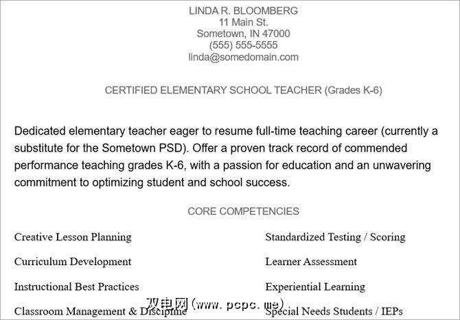 不要被这个免费模板的名称所欺骗,因为它可以用于各种教师或教授职位。您可以简要介绍一下,然后突出您的核心竞争力。列出您的工作经验,然后用您的主要贡献结束。