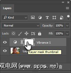 第2步。在“层"面板中选择“ Vibrance"层,然后选择关联的 Layer Mask 。