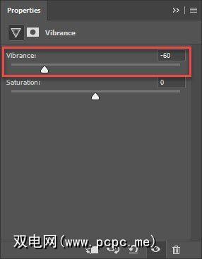 您可以命名该图层。接下来将显示属性框。将“ Vibrance(鲜艳度)"降低为“ -50 "或“ -60 "。