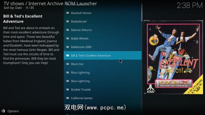 切换回Kodi,并启动Internet Archive ROM启动器以查找要玩的游戏。只要安装了正确的模拟器,您就可以玩游戏。值得花时间在这里,浏览相应的游戏列表。
