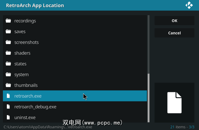 C:\users[USERNAME]\AppData\Roaming\RetroArch\retroarch.exe和