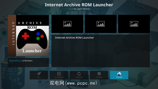 您现在应该返回到附件浏览器菜单,因此,依次单击从存储库安装,然后 Zach Morris附件和视频附件,然后选择< strong> Internet存档ROM启动器。在这里,选择安装,然后等待安装完成。