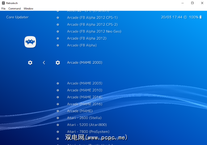 下载完成后,将软件安装为你通常会的。然后启动它,并导航到 Online Updater&Core Updater ,然后为要玩的游戏类型选择正确的模拟器核心。例如,我想播放经典的MAME标题,因此选择了 Arcade(MAME 2000)。