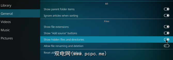 Windows用户将需要花一些时间来配置IARL附加组件。为此,请首先更改Kodi如何对待Windows的隐藏文件和文件夹。转到设置和媒体设置和常规,然后查找显示隐藏的文件和目录。 (您可能需要在左下角将视图从基本视图更改为高级才能看到。)