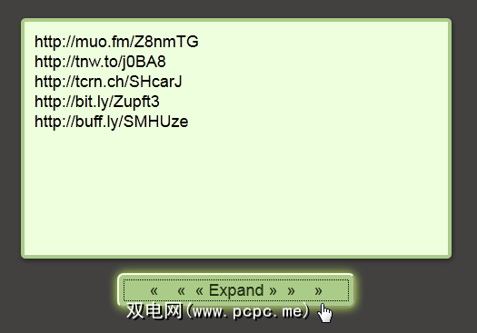 要在地址栏中使用,您要做的就是添加简短内容网址的网址,例如:http://urlex.org/http://muo.fm/Z8nmTG。如果要扩展一批URL,请用***隔开,例如:http://urlex.org/http://muo.fm/Z8nmTG***http://buff.ly/SMHUze。单击这些URL可以查看它的工作原理!