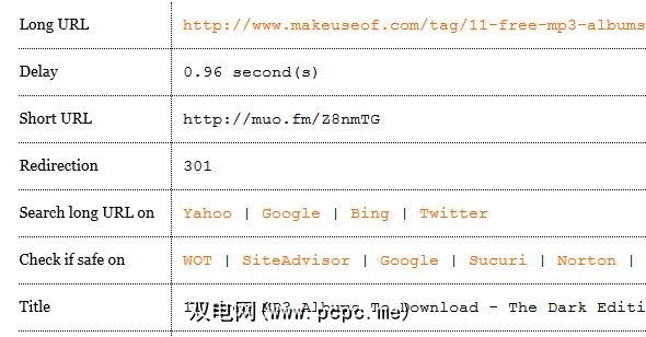 CheckShortURL不仅为您提供扩展的URL。虽然有点难以导航,但是当您最终获得结果时,CheckShortURL可以帮助您准确验证所单击的内容以及它的安全性。除了完整的扩展URL,CheckShortURL还提供Yahoo,Google,Bing和Twitter上的搜索链接,可帮助您使用Web of Trust,McAfee SiteAdviser,Google和其他工具检查URL是否安全,并提供该URL的完整标题。实际的网址。