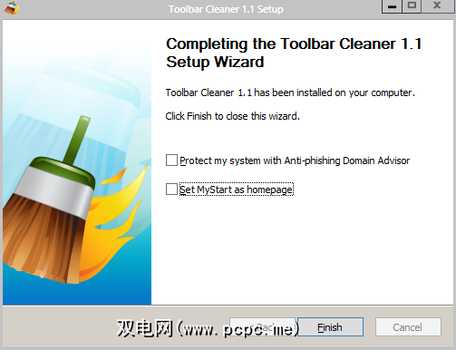 他们 >没有工具栏,但这是相同的。具有讽刺意味的是,它已包含在工具栏清洁器安装过程的末尾,但事实如此。确保您取消选中这两个选项,因为,请相信我,您什么都不想要。