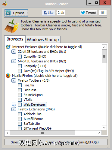 借助我们的支持,Toolbar Cleaner是一个漂亮的小程序,它超出了清理浏览器中庞大,垃圾邮件工具栏的基础。工具栏清洁程序可让您从Firefox和Internet Explorer中删除工具栏。它还支持管理某些工具栏所在的Google Chrome浏览器扩展程序。不包括其他浏览器,因为它们很少是强制性BHO和其他劫持的受害者。考虑为什么要尝试使用我最喜欢的浏览器Opera的主要原因。