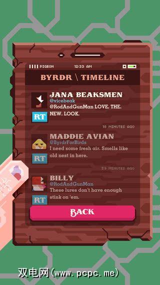Byrdr在您玩游戏时会进行更新,尽管这些更新完全是虚构的。如果您按下RT按钮,可以将它们转推为真实,这是一种愚蠢但不错的方法。这是游戏幽默感的一个很好的例子,在Fish-o-Pedia中可以找到更多的趣味之处。与商店一起,这两个区域为一个非常简单的游戏增加了额外的深度,如果您对它们有足够的了解,甚至还有一些暗示可能会在将来发生变化。
