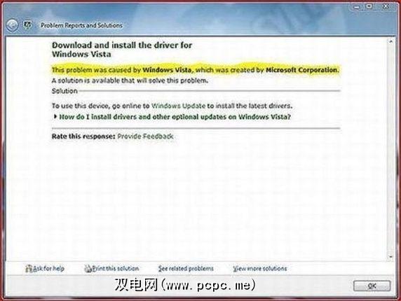 但是,瞧瞧,这里的Windows让我们知道Microsoft Windows Vista引起了问题!该窗口使您知道有一个可以解决此问题的解决方案,但是最好的解决方案可能是停止使用Vista。