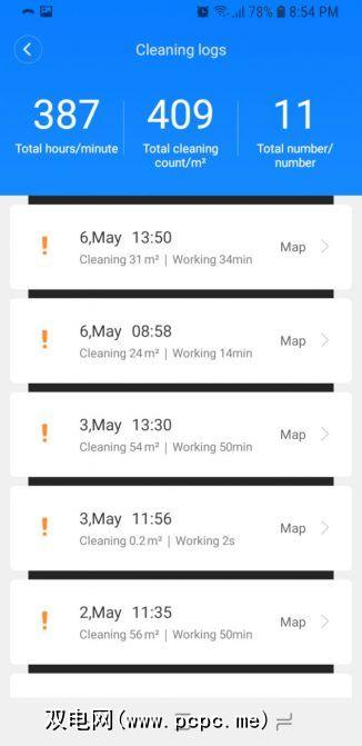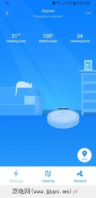 Roborock Xiaowa E35使用了Mi Home应用程序,用于配置和控制设备。除了机械手设置外,值得注意的功能还包括: