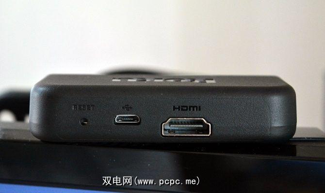 表面上,Roku Premiere令人印象深刻。这是一块小的塑料板,尺寸为3.30 x 1.40 x 0.70英寸,重量仅为1.28盎司。背面是单个micro-USB电源端口和单个HDMI端口。您还会找到一个小的复位按钮,可通过大头针访问。