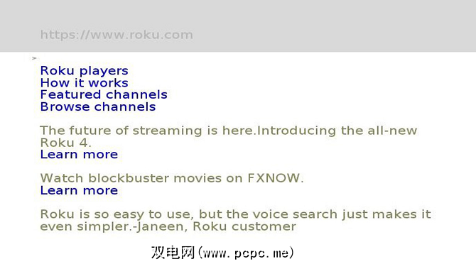 这是因为它只能读取文本-没有图像,没有GUI,没有CSS,没有JavaScript等。无论您访问哪个网站,您都只会看到大量未格式化的文本。