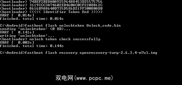 HTCDev网站随后将向您注册帐户的地址发送电子邮件。到达后,将.bin附件保存到c:\ Android文件夹中并返回命令行,输入: