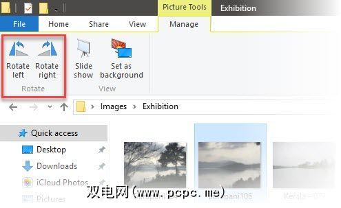 Windows 10文件资源管理器隐藏了一些漂亮的图像处理工具。我们已经了解了如何为家人和朋友开始图片幻灯片演示。现在,让我们转到相同的“图片工具" 标签,并旋转方向错误的图像。