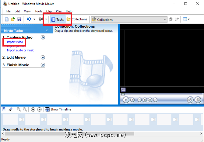 找到,下载并安装了Movie Maker 2.6后,启动该应用程序,然后点击导入视频"。如果看不到该选项,请单击屏幕顶部的任务图标。接下来,在硬盘驱动器上找到文件,然后单击导入。