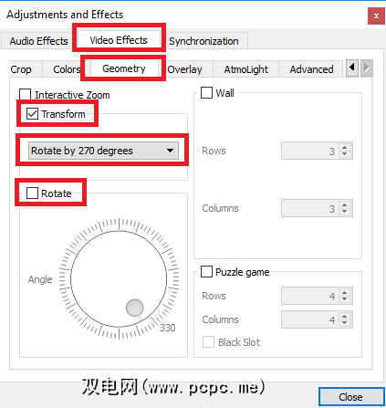 点击视频标签,然后点击几何子标签。现在,您有两个选择。如果您想以90度的标准增量旋转视频,可以标记 Transform 旁边的复选框,也可以选择 Rotate 改变方向几