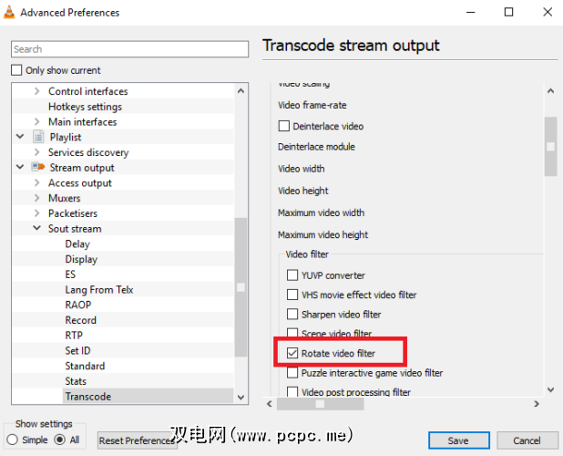 在右侧面板中,选择旋转视频过滤,然后点击保存。