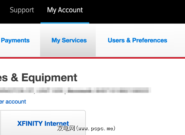否则,如果您拥有康卡斯特发布的路由器,设置为您的Comcast帐户中的相应设置。首先,前往xfinity.com,然后单击右上角的登录。登录后,转到我的帐户,然后单击菜单中的我的服务链接。