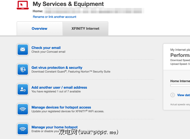 从那里,您将转到一个包含许多与互联网服务相关的选项的屏幕。单击管理您的家庭热点,以查看您的热点当前是否打开,并根据需要将其关闭。