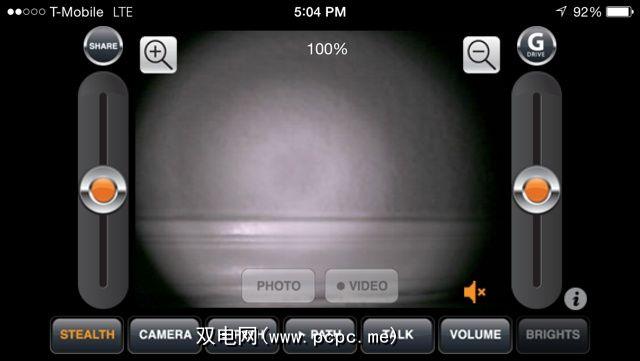 Rover 2.0间谍坦克使用随播智能手机应用。该应用程序的Android和iOS版本可用,并具有许多功能。一旦启动该应用程序,该应用程序的中心区域将中继坦克看到的内容。您还会注意到“放大"和“缩小"按钮-这些按钮可用于从100%缩放(正常视图)到200%缩放的任何位置,这是通过数字方式而不是光学方式实现的。然后,您可以拍摄照片-或将其直接发送到您的手机(就像使用相机拍摄的照片一样)或视频。您也可以根据需要将这些视频发送到Facebook,Twitter和YouTube,但我只建议您在录制过程中是否确实发生了一些有趣的事情。