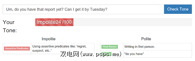 使用FoxType Labs的礼貌检查器,您可以检查任何特定短语的“礼貌等级",有助于与您的朋友,家人和同事保持良好的关系。目前,它仅以英语运行。