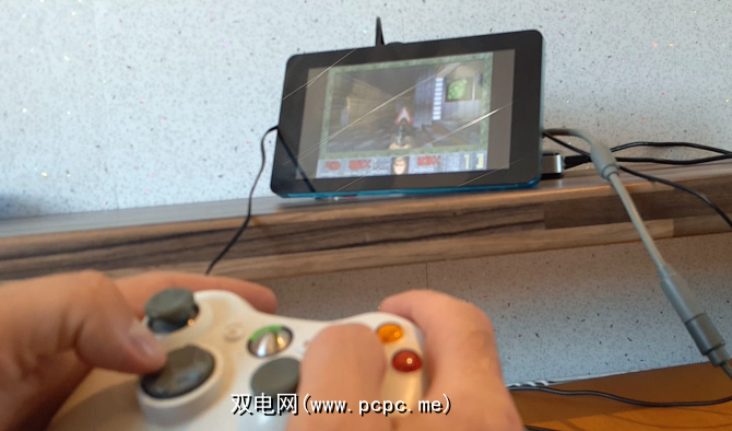 我个人更喜欢使用易于设置的官方Raspberry Pi触摸屏。配置好游戏控制器(USB Xbox 360控制器)后,我可以将Raspberry Pi随身携带到几乎任何地方,当然也需要配备便携式电池组,然后玩Doom。