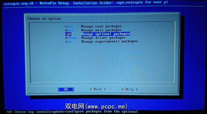 运行RetroPie,并将Raspberry Pi连接到互联网,导航到主 RetroPie 菜单,然后使用控制器选择 RetroPie设置。您将被带到带有蓝色背景的屏幕上的基于灰色文本的菜单。