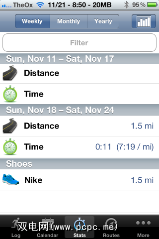 当您记录更多跑步时,您将在统计信息和日历屏幕上整体查看统计信息。统计信息将每天分解您需要了解的所有内容。您还可以选择每月或每年查看统计信息。日历只是向您显示您的跑步日期,因此您可以跟踪锻炼的时间和不锻炼的时间。随着您使用该应用程序的时间延长,您将能够使用这些屏幕来跟踪您的改进情况,并查看您是否真正在进步。