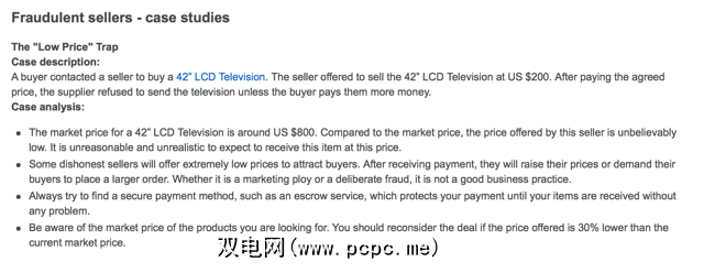 不过,AliExpress中有一个巨大的漏洞:商户批准流程。我不能说这是一个什么样的过程,因为只有中国大陆的商人才可以在该网站上销售商品,但是网站上有很多骗局的报道。如此之多,事实上,速卖通安全中心提供了一部分欺诈案例研究,以及有关如何在从其网站购买商品时避免欺诈的提示。