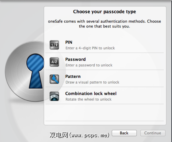 如果您将定期访问oneSafe内容,则可以选择使用病毒码密码来解锁应用程序,或者您可以使用更复杂,更安全的密码,其中包括数字,字母和符号。 oneSafe不会存储您的密码,因此您也可以选择发送自己的两个安全问题和答案,以在需要时重置密码。