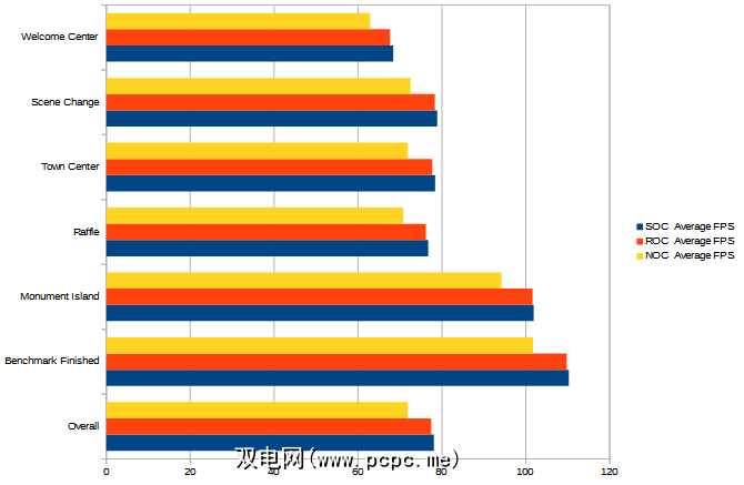 下图显示了在整个测试过程中达到的FPS值。我使用Bioshock Infinite的基准测试实用程序收到了这些读数。