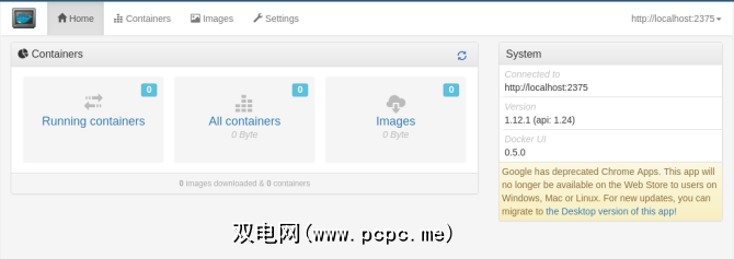如果有兴趣的话,您还可以抓取Simple Docker UI Chrome应用程序。请按照此处的说明进行设置,以便您可以连接到计算机上的Docker守护程序。