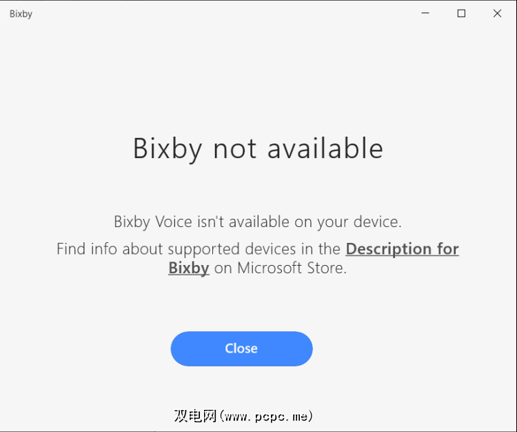 如果您的笔记本电脑不是上述型号之一,则 Bixby 很可能无法正常工作。该应用程序仍可在商店中下载。但是,当您尝试运行它时,您可能会收到一条消息,告诉您“Bixby 语音在您的设备上不可用”。