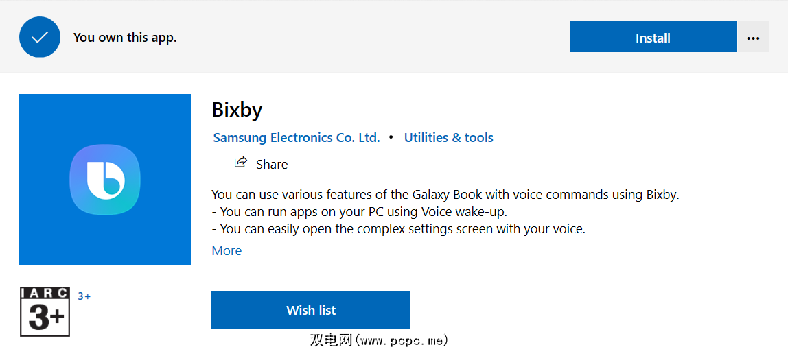 Microsoft Store 上的描述称,三星为其 Galaxy Book 产品系列优化了 Bixby 。理论上,这意味着您可以在其他制造商的产品上安装该应用程序,它可能会工作,但其功能可能会受到限制。因此,如果您想充分利用 Bixby,则需要投资购买 Galaxy Book 笔记本电脑。