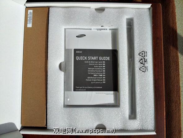 打开三星Chromebook的包装非常简单。首次打开包装盒时,您会被《快速入门指南》以及真正的Chromebook上的聚苯乙烯泡沫塑料覆盖物所吸引。取下泡沫塑料覆盖物后,您会看到防静电软包内的Chromebook。在所有聚苯乙烯泡沫塑料旁边的较小的棕色框中,是为Chromebook充电所需的电源。除了这些物品外,盒子里什么也没有。