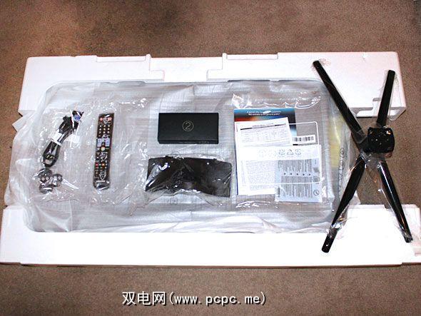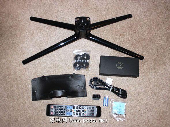 这里是包装随附的所有物品的完整视图(当然要减去实际的电视)。包装从顶部到底部包含以下物品: