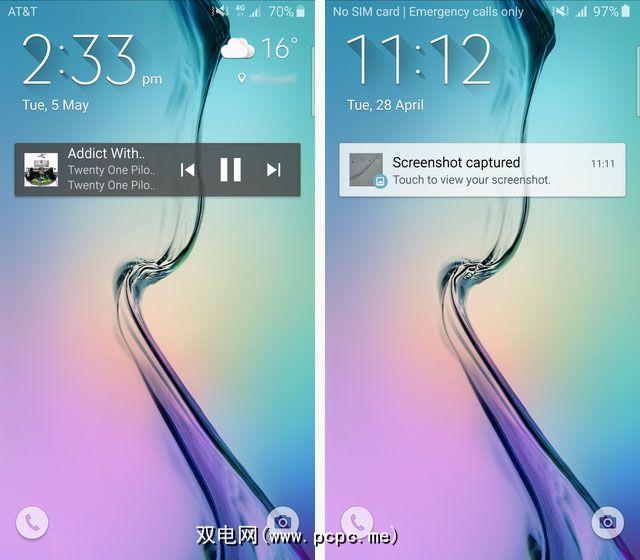 在Lollipop中,通知会像平常一样显示在锁屏上,但是访问它们的方法已经变得很尴尬。 。在有库存的Android中,通知需要双击才能解锁。在HTC One M9上,通知只需单击一下。但是在Galaxy S6上,通知需要先轻按一下,然后在屏幕上的任意位置滑动一次,或您可以点按通知并向下拉,然后再次点按它。