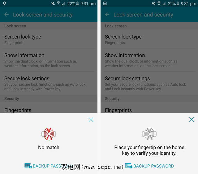 如果您的帐户出现问题,则需要输入备用密码。指纹扫描器或手指由于某种原因无法使用(也许您戴着手套)。在该主题上,值得注意的是,S5具有额外的灵敏屏幕,可以让您用指甲或戴着手套触摸屏幕,但S6则没有。